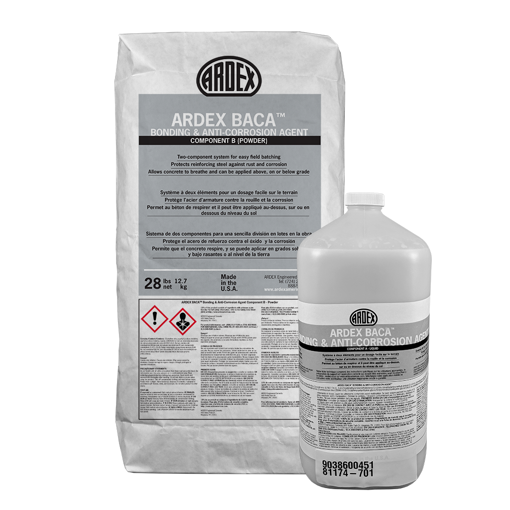 ARDEX BACA Bonding & Anti-Corrosion Agent is a high-performance, two-component protective bonding slurry designed for use with ARDEX repair mortars and concrete restoration systems. This 36.5 LB kit provides both superior bonding properties and reliable anti-corrosion protection, making it the ideal solution for professional contractors and engineers working on structural concrete repair projects. Formulated with polymer-modified cement and specialized corrosion inhibitors, ARDEX BACA helps extend the life of reinforced concrete by preventing steel reinforcement bars (rebar) from rusting and ensuring strong adhesion between new repair mortar and existing concrete substrates.