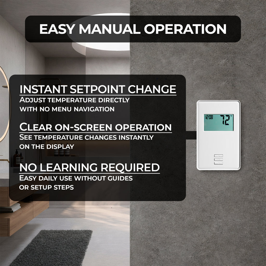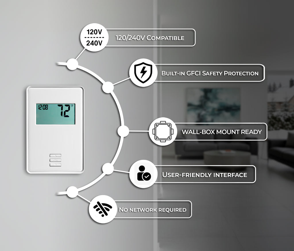 - Compatible with 120V and 240V electric radiant floor heating systems