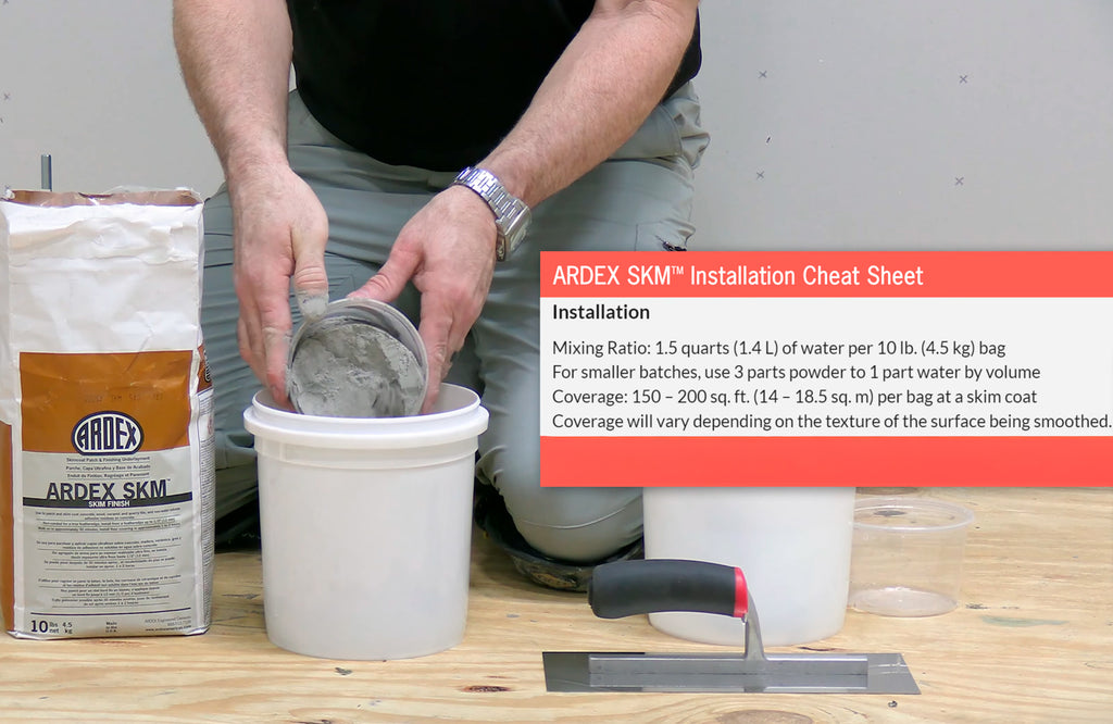 ARDEX SKM meets or exceeds industry standards for surface preparation and is backed by the ARDEX SystemOne™ warranty when installed in conjunction with approved adhesives.