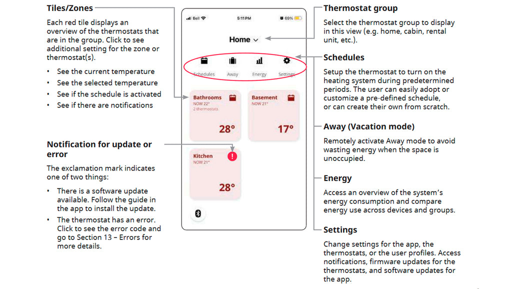 - Vacation Mode & Zone Control – Activate energy-saving vacation settings remotely and heat only the rooms you use.