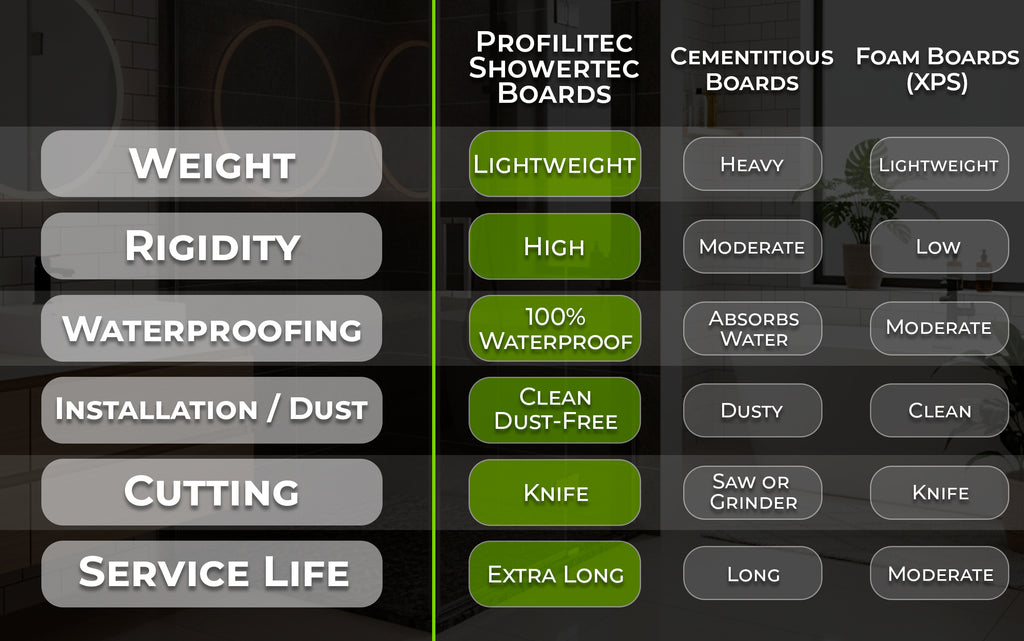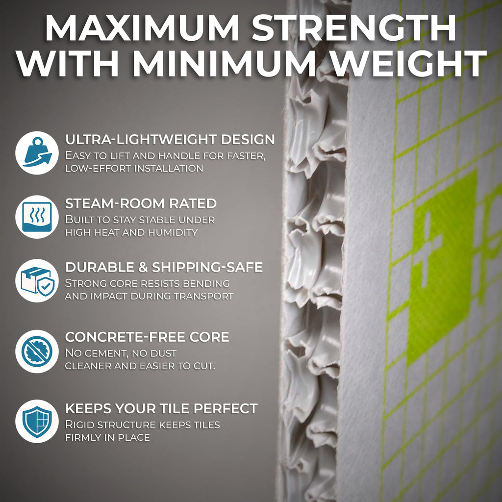 - A trusted alternative to traditional cement backer boards and drywall, offering unmatched structural reliability and long-term waterproofing integrity