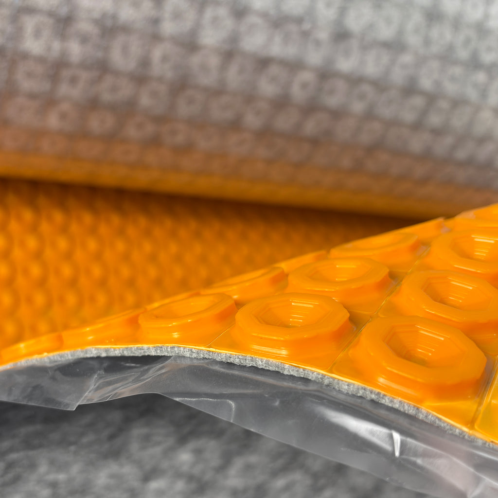Its integrated fleece layer functions as a thermal break, minimizing heat loss into the subfloor and delivering faster response times for electric radiant floor heating systems. Combined with the membrane’s studded structure, it accommodates loose-lay heating cables that can be arranged freely to target warmth precisely where needed—perfect for tile and stone floors in kitchens, bathrooms, foyers, basements, offices, and hospitality settings.