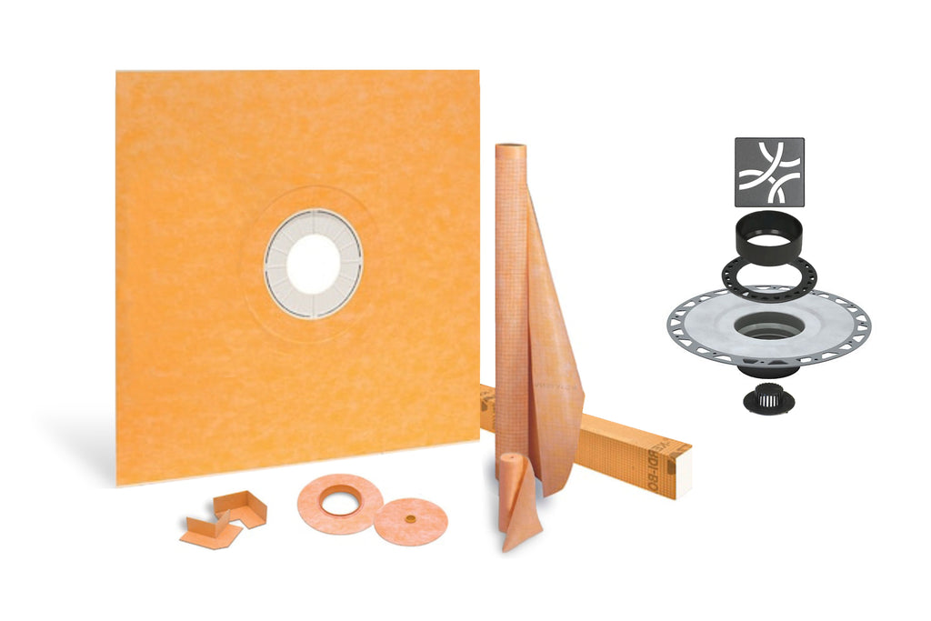 - The shower kit comes with KERDI200/10M membrane which is pliable, sheet applied, bonded waterproofing material for shower and bath surround