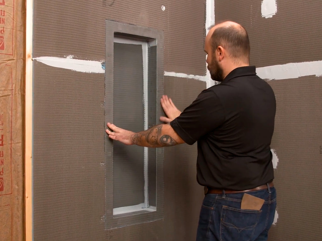 - Wedi shower niche is a watertight enclosure (shower organizer) crafted from polystyrene, ensuring total waterproofing for sealed tiled shower wall assemblies